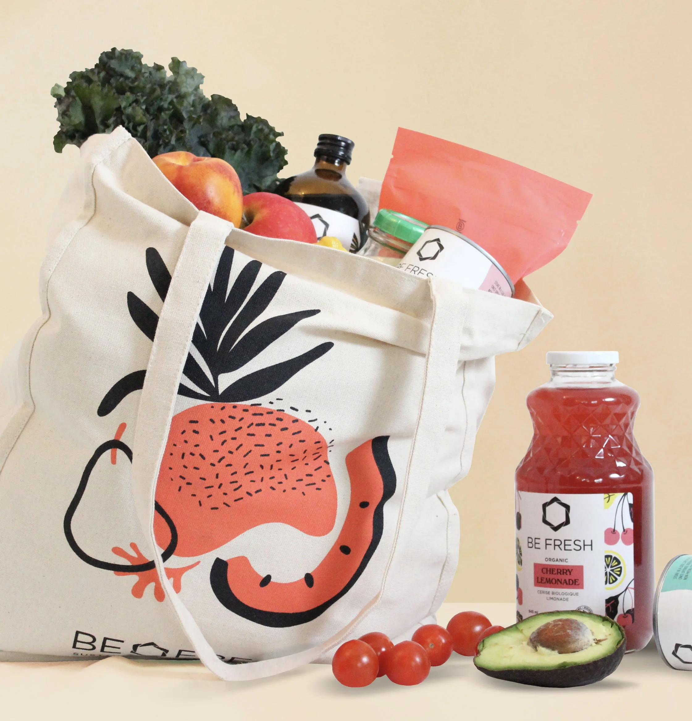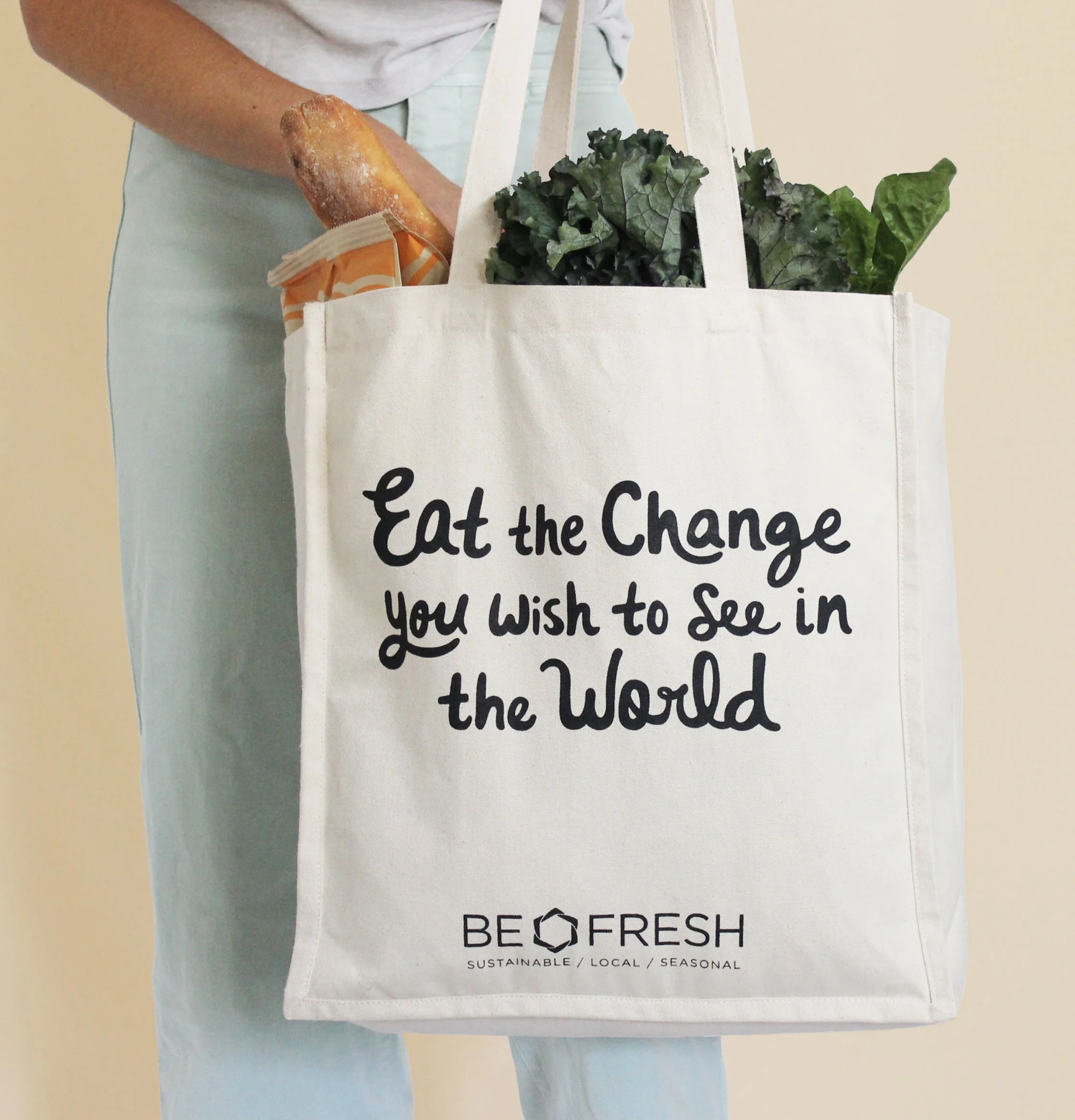 To reflect Vancouver’s Be Fresh Local Market motto: Eat the Change You Wish to See in the World, custom typography and abstract shapes resembling food were created for sustainable tote bags and print advertising. With a wide selection of organic produce and specialty items, we helped celebrate the local market as a leader in providing delicious and nourishing food for it’s community and beyond.